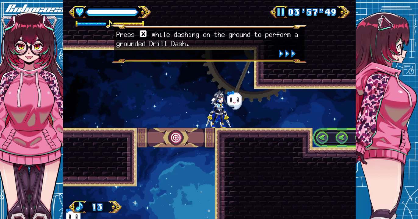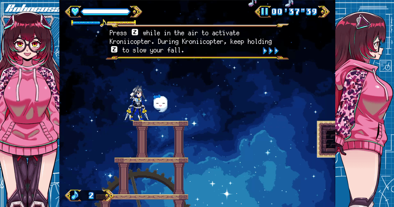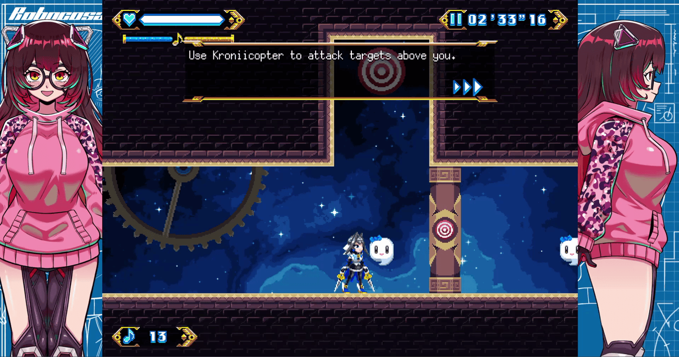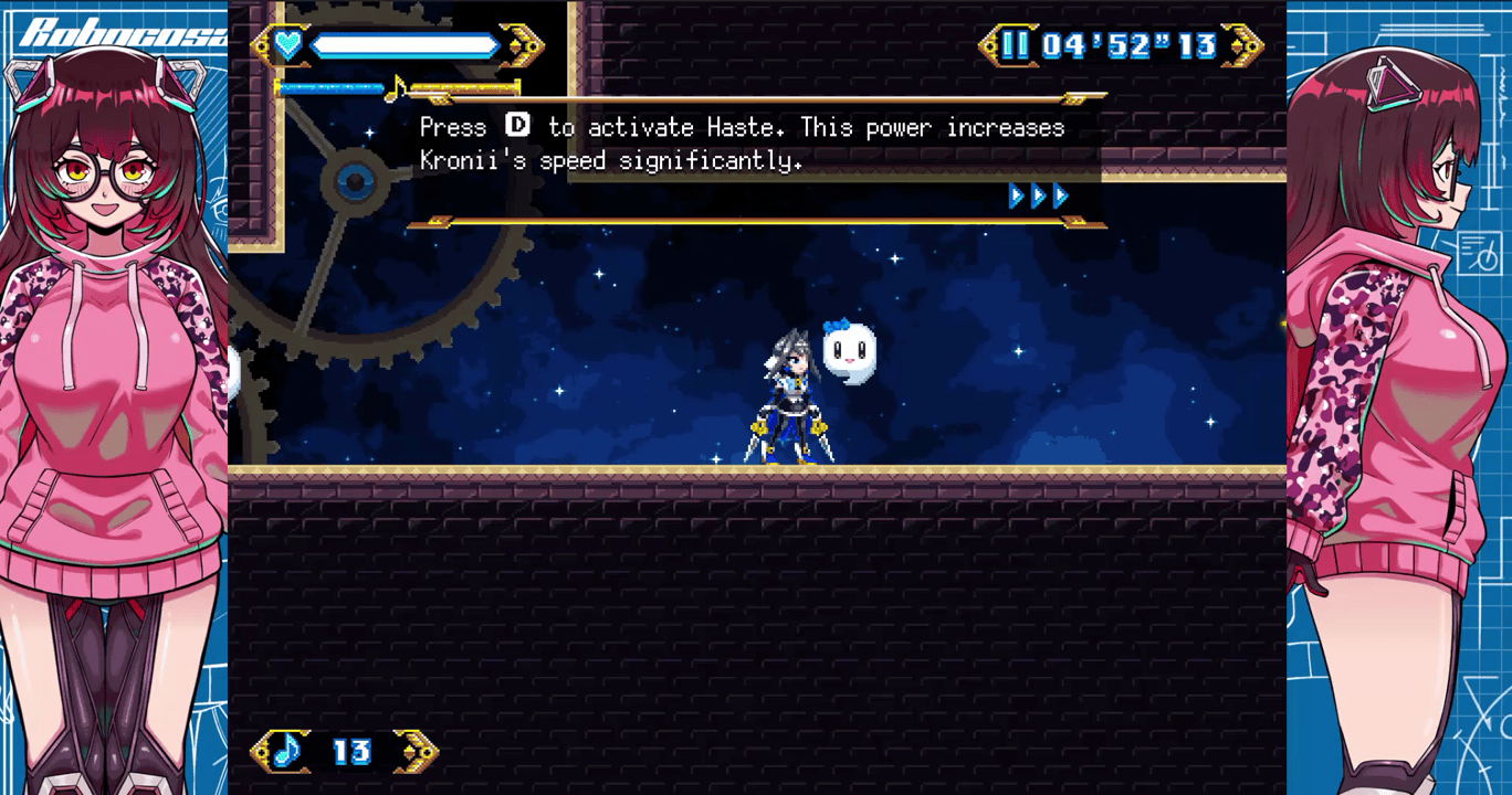 Ouro Kronii is the main protagonist of Chrono Gear: Warden of Time, a retro-inspired 2D action game blending fast-paced platforming, sword-based combat, and interconnected hub areas with a dramatic storyline. Kronii, also known as the Warden of Time, sought to become the most powerful being in existence. Her ambition led to the creation of the Chrono Gear, a powerful artifact designed to preserve the stability of timelines. However, such immense power drew the attention of dark forces.