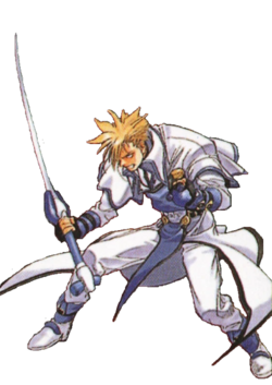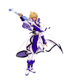 Ky Kiske is the deuteragonist of the Guilty Gear series and the rival of Sol Badguy. Once a member of the Sacred Order of Holy Knights during the Crusades, he is a charismatic swordsman whose deep sense of justice and faith guide his actions through every challenge. He also possesses an Awakened form, appearing as an unlockable boss character in Guilty Gear Isuka.