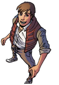 Affiliations: Doctor Emmet Brown, Einstein (Doctor Brown's dog), George McFly (His dad), Lorraine Baines (His mom), Dave McFly (His brother), William McFly (His ancestor), Jennifer Parker (His girlfriend and wife in the future), Marty McFly, Jr. (His son in the future)