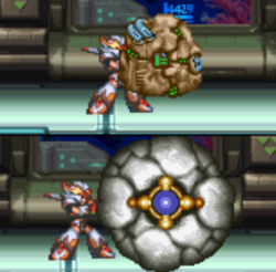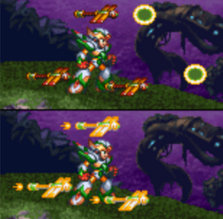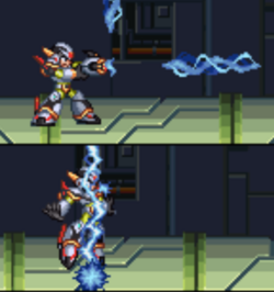 X and Zero rendezvoused outside Sigma's fortress, where Zero ordered him to find a safe route while he took the brunt of enemy fire. Upon reaching the interior, the two encountered Vile again. Zero told X to let him handle Vile, but X could hear him being overpowered through the walls and rushed to his aid. X then entered the room and found Zero trapped in a cage and Vile piloting a new Ride Armor - Vile attempted to intimidate him into standing down, but Zero encouraged him to fight instead. Despite his best efforts, X was still no match for Vile and was again paralyzed. Desperate, Zero mustered the rest of his strength to break out of his cage and overpower his Z-Buster, destroying the Ride Armor but badly wounding himself in the process. Amused by Zero's failure to properly finish him off, Vile continued to taunt X, but was shocked when the rookie suddenly gained a boost of power and broke out of his paralysis. The two then fought each other, resulting in X finally destroying Vile. He then rushed to Zero's side, finding him split in half at the waist. Zero explained that he would not live to reach Sigma, and instead encouraged X to take his place and finish the fight. If X did not have the Arm Parts, Zero would also give him his own as a final parting gift.