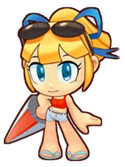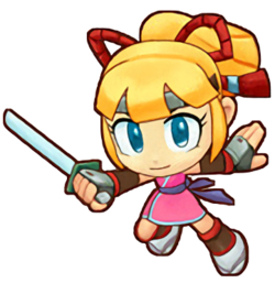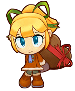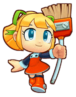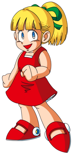 Roll (ロール Rōru) is a kind-hearted humanoid robot created by Dr. Light to be a housekeeper, helping around Dr. Light's Laboratory by cleaning and cooking. Roll is like a younger sister to Mega Man. Her dream is to one day open a hospital to help people in need.