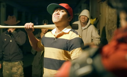 Range: Standard Melee physically, Extended Melee with his bat