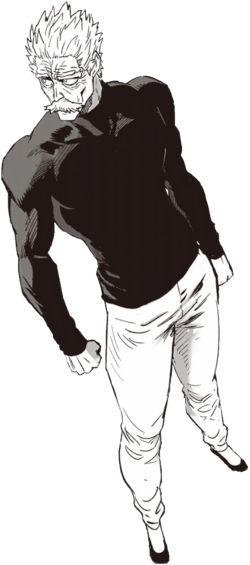 Bang, also known by his hero alias Silver Fang, is a martial arts master, the creator and teacher of Water Stream Rock Smashing Fist, and formerly a professional hero along with being a supporting character in One-Punch Man. He was formerly the 3rd highest ranked S-Class hero of the Hero Association and was recognized as one of its most powerful heroes. He is currently settled in City Z. In his youth, he was nicknamed Wind of Blood.