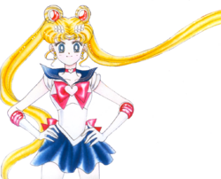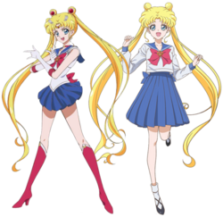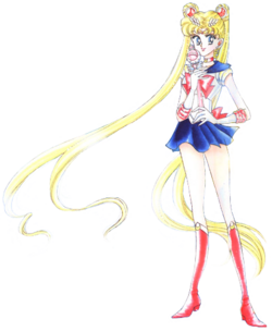Usagi has blue eyes and long blonde hair that she wears in odango. She has porcelain skin and a slim figure. She is the shortest of the original 5 Senshi.