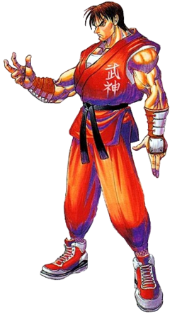 Special Features: The kanji 武神 (Bushin, meaning "god of military arts") is prominently displayed on his gi. Guy’s frown and serious demeanor are constant distinguishing traits.