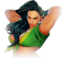- Default Outfit: Sleeveless martial arts gi designed to expose her upper torso, featuring a bright green uwagi with yellow lining and a tie at the center. She wears matching bright green martial arts pants with yellow accents, secured by a black belt. The waist detailing resembles a green thong-like design, with black shin guards worn underneath the pants over bare feet. She accessorizes with multicolored bracelets similar to Elena’s. The overall color scheme mirrors the Brazilian flag.