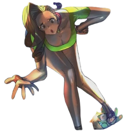 - Second Alternate Costume: Yellow open jiu-jitsu gi jacket with black outlines, black bikini top underneath, bright green buruma secured with a black jiu-jitsu belt worn low on the waist, black leg wraps over bare feet, and black fingerless gloves. Her braids are tied into a high ponytail.