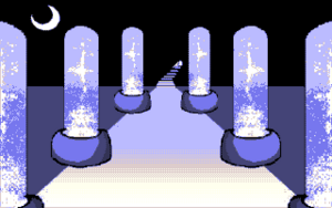 One example of this is believed to be in Touhou 02's Stage 3 Scarlet Dream ~ Scarlet Dream where it displays stars and a space-like effect in the background[175], however this is actually the World of Fantasies, the world that lies between Makai and the human world, with Genji confirming this is definetely not outerspace as Reimu can breathe just fine there[176].
