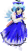 - Facial Features: Aqua-colored eyes and hair. A blue ribbon is worn in her hair.
