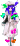 Facial Features: She has purple hair and purple eyes. Multiple ribbons are tied to her hair and other parts of her clothing.