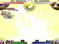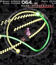 Additionally, Marisa has copied Patchouli's regular danmaku attack and renamed it Love Sign "Non-directional Laser". This attack appears as Marisa's normal B-type bomb in Perfect Cherry Blossom and as a spell card in Imperishable Night and other games.