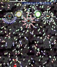 The Girl of Knowledge and Shade Patchouli Knowledge Ability: Manipulating fire, water, wood, metal, earth, sun, and moon The 4th stage boss. She is the friend of the young mistress and is a witch who has lived for 100 years. The "One-week Girl". Her weak constitution makes her poor at physical combat, but she makes up for for that with her various and powerful magical attacks. Patchouli's ribbon is not a holy charm, but rather an accessory that boosts magic power. As a genuine witch, she possesses terrifying sorcerous powers. However, due to her natural asthma, she has difficulty reciting her incantations to the end. She also seems to have a vitamin A deficiency. Maybe her windowless library room is dusty. No, obviously, it's very dusty. But with all the time she spends near her books, she feels that they're a part of her and cannot stand to be separated from them. She's lived this way for a hundred years or so. Total of twenty-one card attacks. |