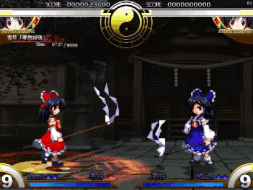 A small shrine resting in a country far to the east, the "Hakurei Shrine". Many out-of-the-ordinary events transpire here, causing normal people to almost never draw close to the shrine. On the other hand, there is also a reason that "things that aren't human" never descend to terrorize the Human Village: because shrine maidens, females with the power to channel the gods, have lived at this shrine for many generations, guarding the gates to other realms such as Hell and Makai where those "things that aren't human" reside. Long ago, powerful mountaineering ascetics, exorcists, and spiritual leaders from all areas of the country gathered in order to seal away youkai, demons, and other creatures from their land. Despite their great success, the recoil from performing the ceremonies was so tremendous that it annihilated everyone gathered there. Much time passed after that — so much time that the effectiveness of the seal began to fade. The shrine maiden currently living at this shrine has trained her body and mind intensely in order to fight these unstoppable enemies, these "things that aren't human", and prevent them from reaching the Human Village. Even though she knew it was a futile effort, even though she knew her life would be forfeit, she made her way to one of the gates. ...Actually, it's not really that serious. The truth is that this shrine maiden is Reimu Hakurei, who always gets caught up in strange things. One of the "things that isn't human" destroyed her shrine, and she flew into a rage. There is only one thing that will quell her anger: the total annihilation of all "things that aren't human"!! ...Well, that's half wrong too. The real truth is that Reimu Hakurei is actually quite the optimist. Acting on her whims as always, she figured she'd go and enter one of the gates. After a while, she realized that only the Hakurei Shrine's greatest treasure, the Yin-Yang Orb, was effective against these non-human creatures. Reimu "Well, whatever. Things will turn out just fine as long as I use the yin-yang orb skillfully!" What sort of fate awaits this shrine maiden?