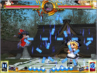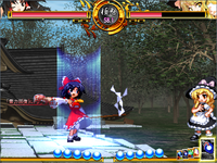 Later, Reimu is drawn into an unfamiliar world where she encounters Alice once again. Confident due to having her grimoire, Alice challenges Reimu to a rematch, but is defeated despite her preparation.