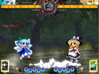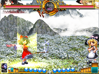 In a far eastern land, there was a generally quiet shrine in the mountains. The Hakurei Shrine's shrine maiden, Reimu Hakurei was also generally bored. Reimu "Ah, man, I wonder if there's any work (something fun) around." And so, because of her careless words, a large amount of ghosts and such suddenly came barging into the shrine. You reap what you sow. Reimu "Eeek! What the heck is this!?" Reimu quickly got down to business and began her evil spirit extermination. Reimu "Hmm... At this rate, the shrine will be ruined *again*. Looks like there's no other choice. I'll find the source of this and crush it!" Somehow, (and you musn't make fun of the shrine maiden's "somehow" method) Reimu felt that the lake in the mountains behind the shrine was suspicious, and so she promptly headed towards the mountains. (Though I get the feeling that in times like this, it's precisely because she left the shrine empty that it gets ruined...) Reimu "This place is definitely suspicious. There are tons of evil spirits here." Reimu "I'm getting excited. I finally have some work (evil spirit extermination) again!! -- Meanwhile. Marisa "Hmm... What the heck is this magic power?" The possessor of a large capacity of fierce magic power, Marisa Kirisame, was suddenly tempted by a vast magical force. Marisa, intent on making this power her own, headed towards the source. Marisa "This is lovely! Where's this crazy amount of magic power coming from? Marisa made her way towards the lake without Reimu knowing. Well, that's what she had intended... And so, the two went to the lake for separate reasons... hmmm.