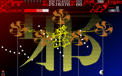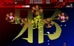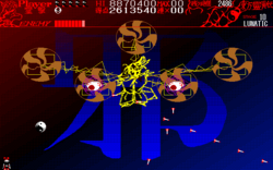 - In the final phase of the attack pattern, the evil eyes summon a pentacle that both fires danmaku and ultimately itself serves as an offensive element.