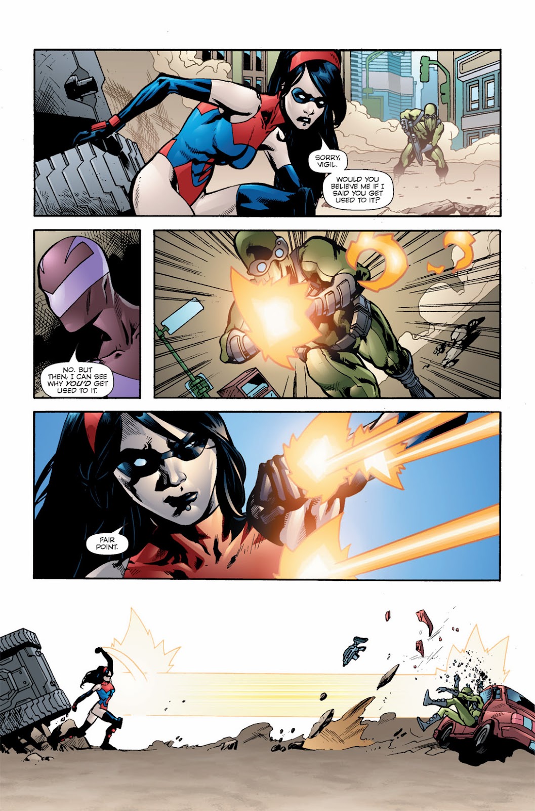 Standard Tactics: She wil start with physical combat likely kicking or punch her opponents. | She starts with her Energy Beams.