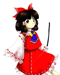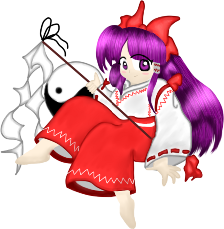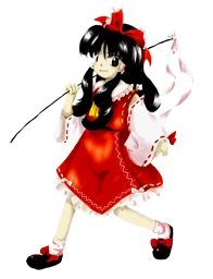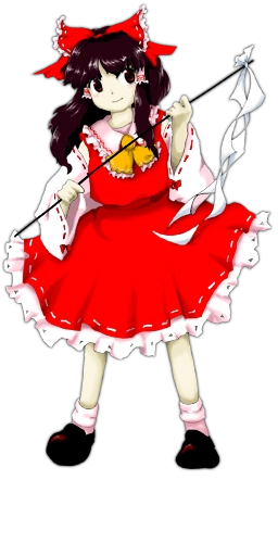 Reimu Hakurei (博麗 霊夢 Hakurei Reimu) is the main protagonist of the Touhou Project series along with the deuteragonist, Marisa Kirisame. As the shrine maiden of the Hakurei Shrine, she manages the Hakurei Border of Gensokyo and exterminates troublesome youkai. Not much is known about Reimu's history prior to the events of the games. Her earliest mention in the Gensokyo timeline is four to five years prior to Chapter 22 of Curiosities of Lotus Asia, which took place in 2006. ZUN does mention in one of his Shanghai Alice Correspondence documents that there was a previous Hakurei Shrine Maiden, and it's generally assumed that there's a line of them.